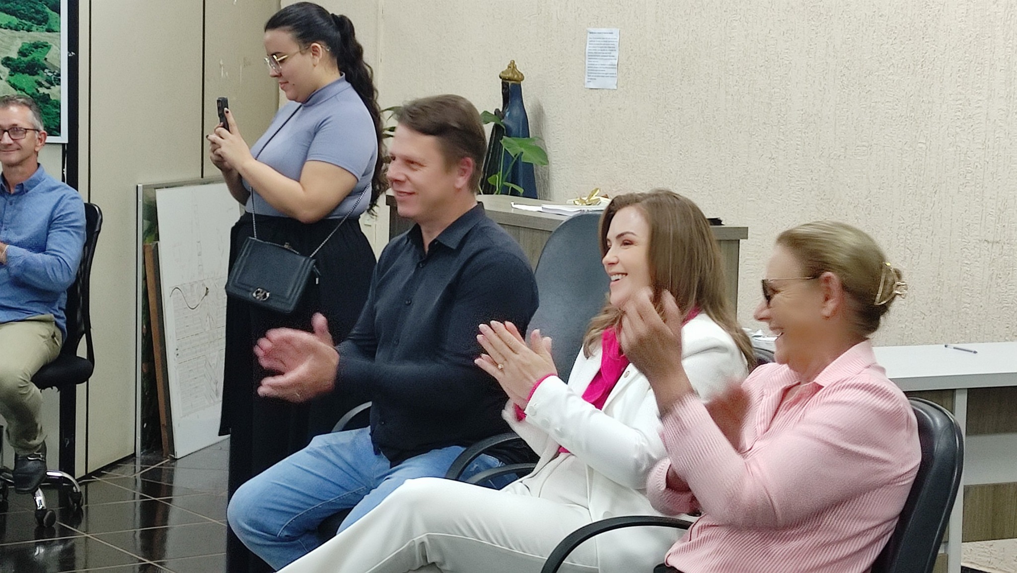 Prefeito de Santa Lúcia PR, Silvano Tortelli e vice prefeita Zélia Galvão,juntamente com alguns vereadores, secretários e demais população em geral, se reuniram na sala da prefeitura para recepcionar a deputada federal, Leandre Dal Pont, onde visitou o município para trazer recursos , entre eles a entrega de um veículo Van, a deputada também acrescentou o carinho especial que tem pelo município de Santa Lúcia e que vai continuar trabalhando por esta cidade.